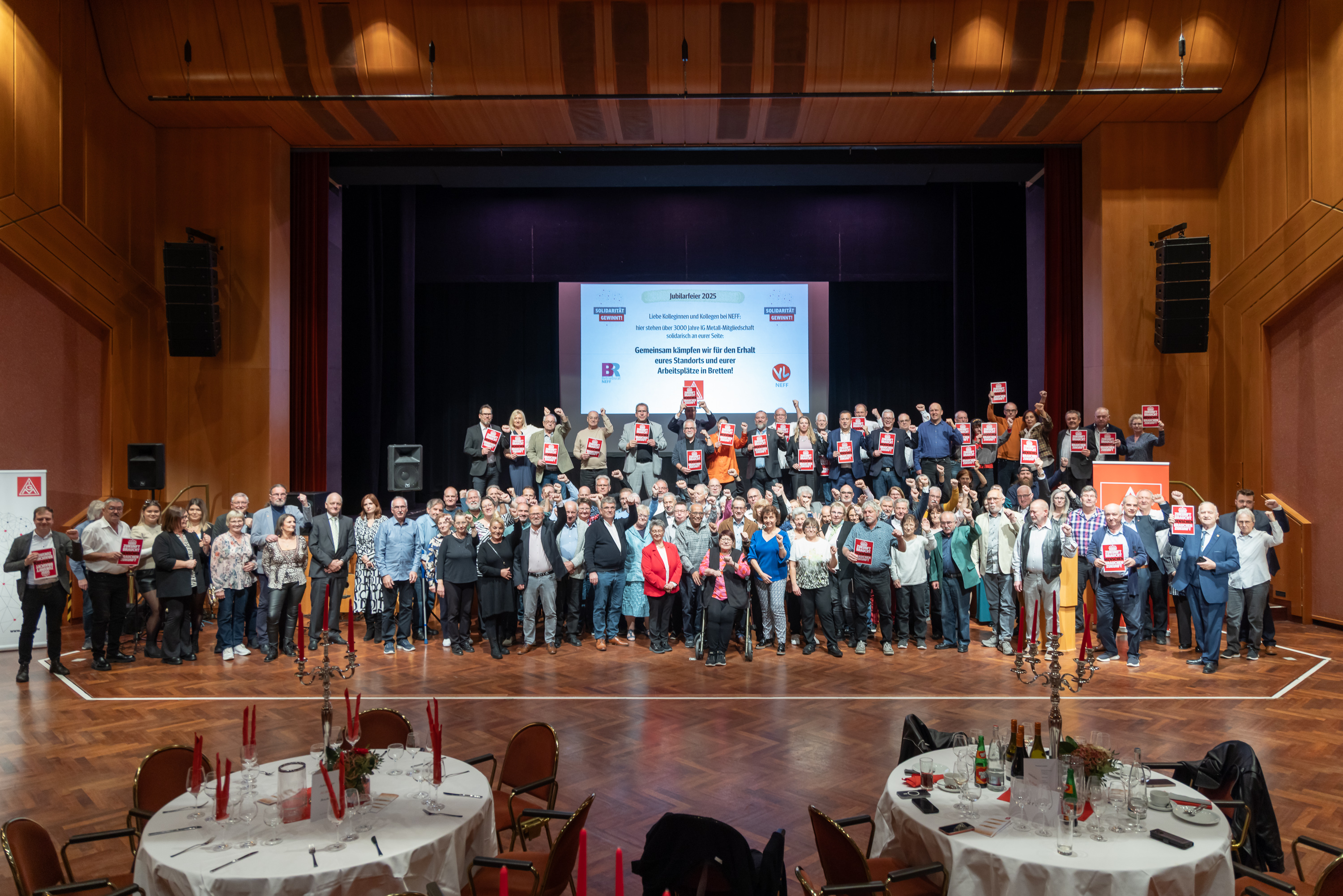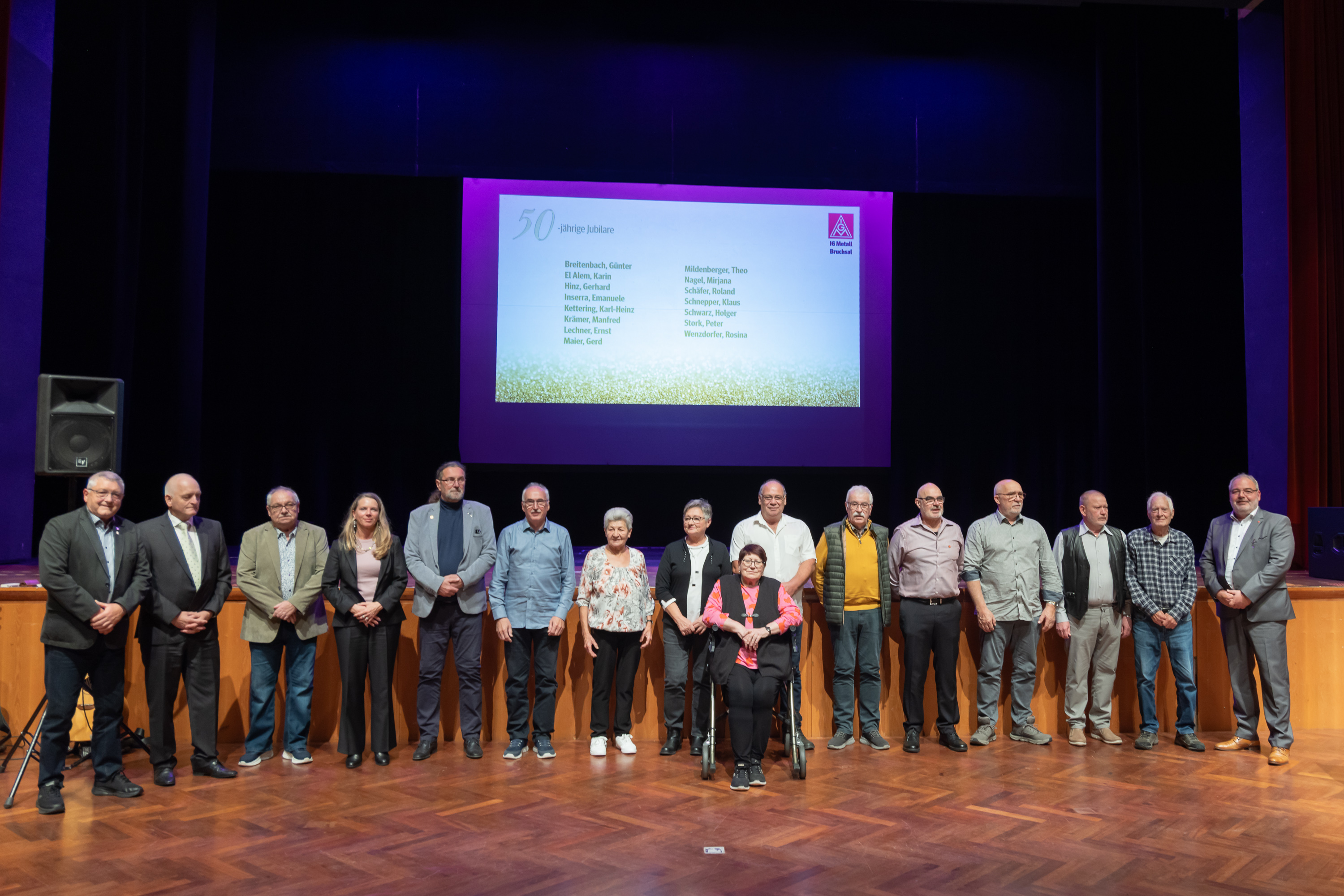 Sie betonte, dass unsere Entschlossenheit und unsere Stärke in der Vergangenheit entscheidend war, um die Meilensteine der Mitbestimmung in Deutschland zu erreichen und dankte den Jubilaren für ihren jeweiligen Beitrag. Im Hinblick auf die aktuelle Transformation unserer Industrie wird dies auch zukünftig entscheidend sein, weshalb wir weiter an Stärke und Einfluss als Arbeitnehmer gewinnen müssen.