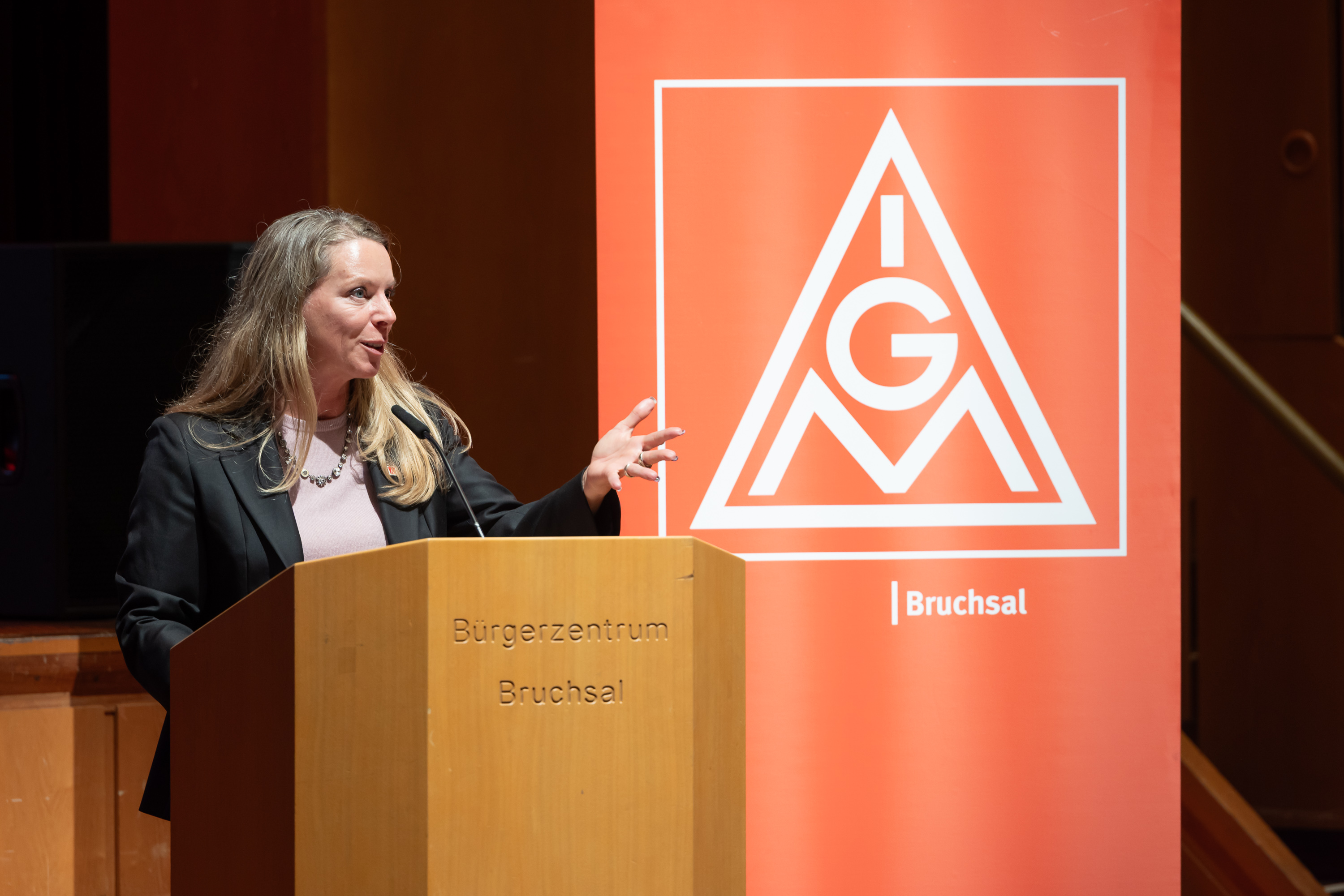 Nach der Begrüßung von Dirk folgte die Festansprache von Nadine Boguslawski, geschäftsführendes Vorstandsmitglied der IG Metall.