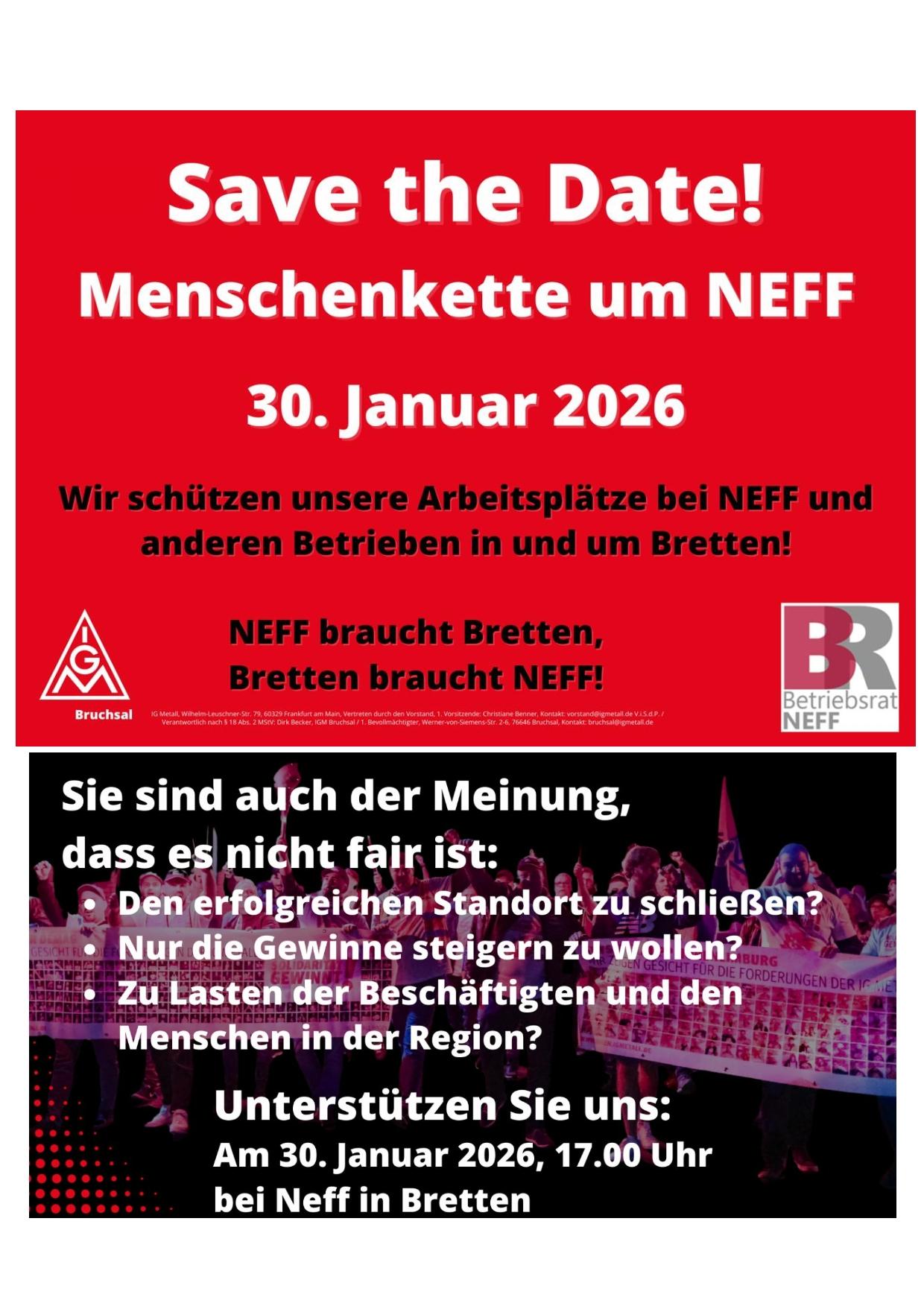 Nächste Aktion: Menschenkette um das gesamte Neff-Werk - Save the Date!
