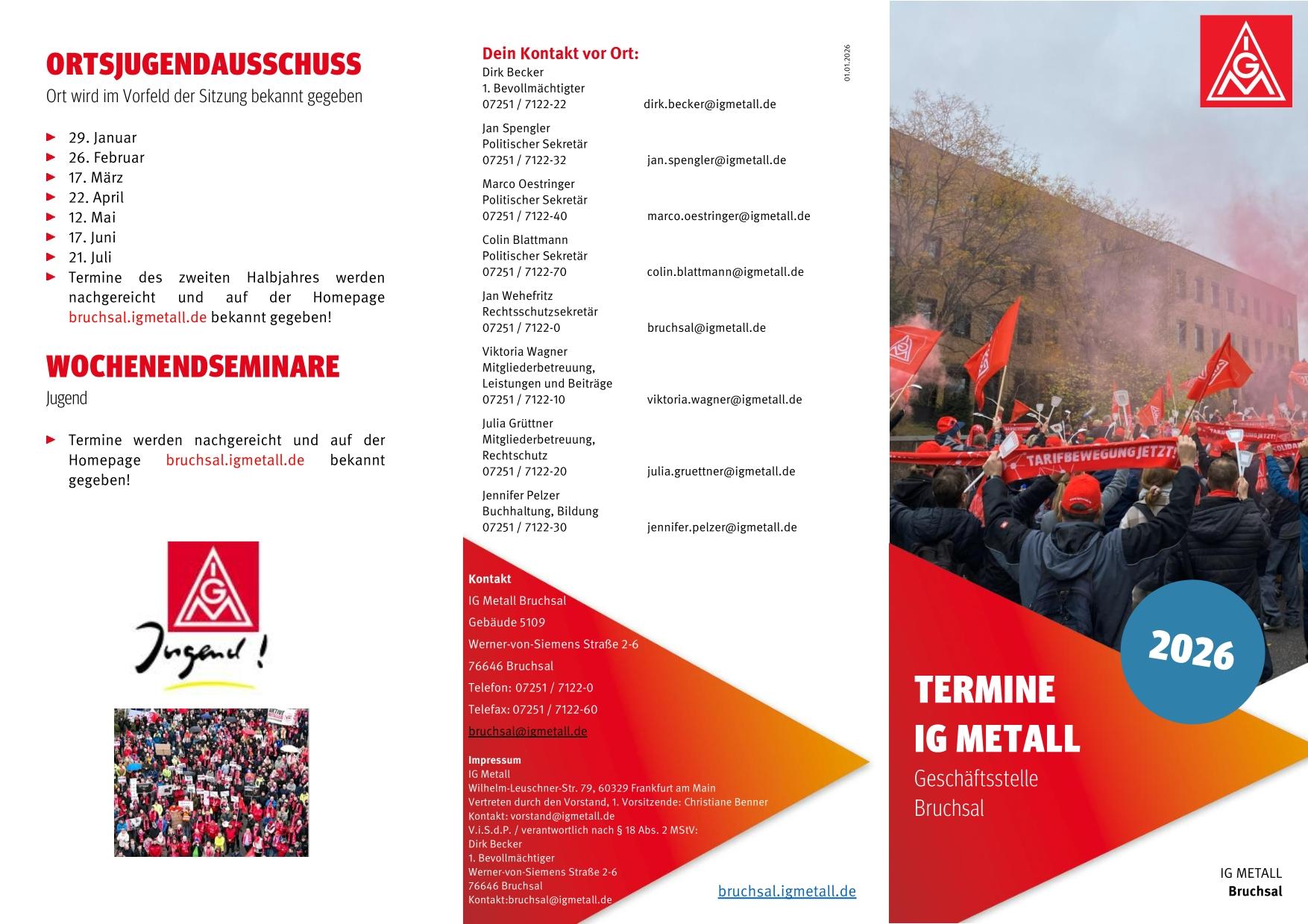 Die Terminplanung der IG Metall Geschäftsstelle Bruchsal für das Jahr 2026 ist verfügbar!