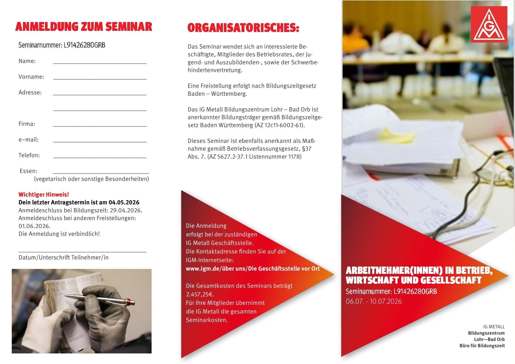 Anmeldeschluss bei der IG Metall: 29. April 2026