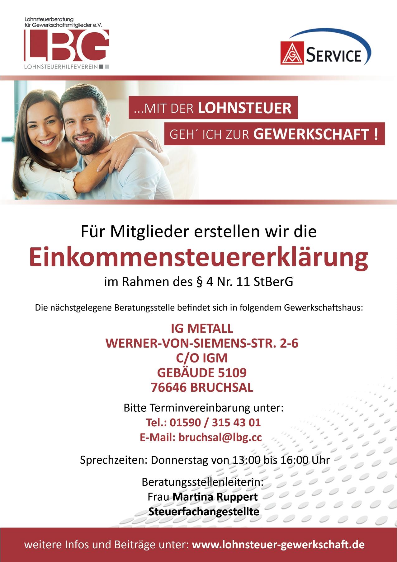Weitere Infos zu unserer Lohnsteuerberatung für Gewerkschaftsmitglieder findet ihr auch beim IGM Service oder direkt bei der LBG.