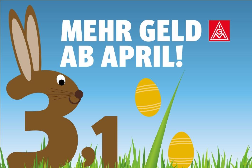 In den tarifgebundenen Unternehmen der Metall- & Elektroindustrie können sich die Beschäftigten ab diesem Monat über 3,1% mehr Entgelt freuen.