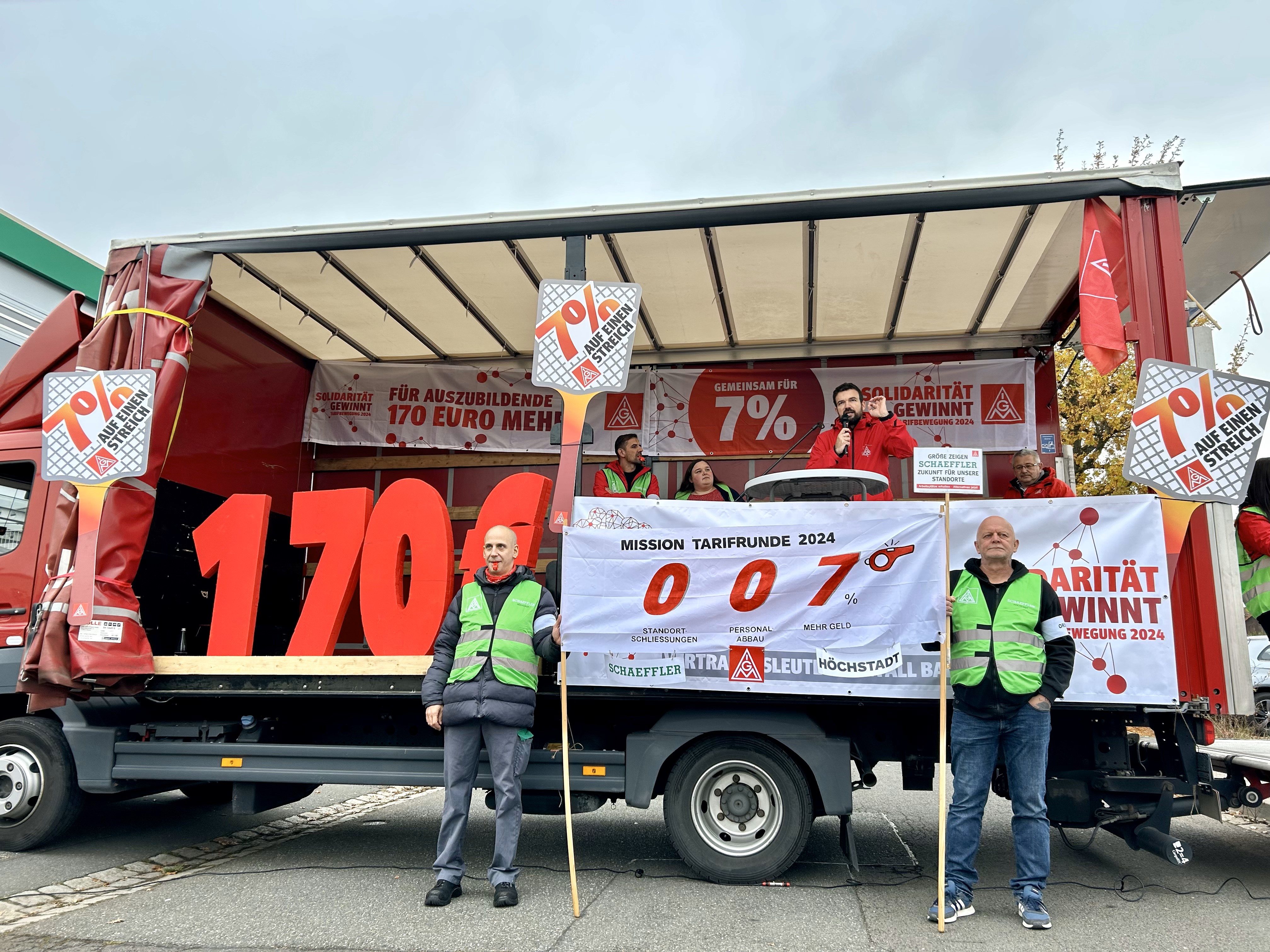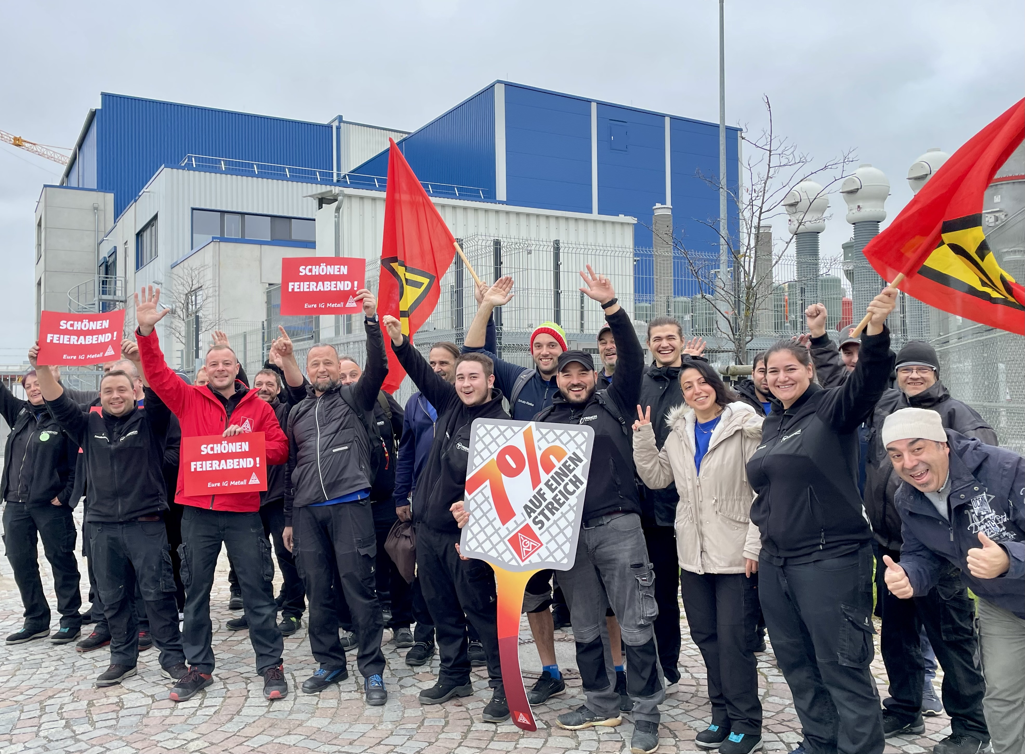 Jeweils 1200 Beschäftigte gingen bei MTU in München und Airbus Helicopters in Donauwörth in Warnstreiks. Weitere große Kundgebungen gab es mit 530 Warnstreikenden bei ZF in Auerbach und jeweils 500 Warnstreikenden bei Schaeffler in Höchstadt und BSH Hausgeräte in Traunreut. Am späten Abend greifen heute erstmals die Audianer in Ingolstadt ins Geschehen ein. Die gesamte Nachtschicht wird für eine Kundgebung das Werk verlassen.