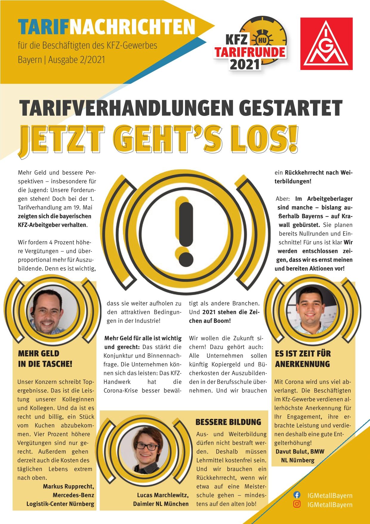 Die IG Metall fordert für die 145.000 Beschäftigten im Kfz-Handwerk 4 Prozent mehr Geld für zwölf Monate. Für Auszubildende fordert die IG Metall eine überproportionale Erhöhung der Vergütungen und die Lehrmittelfreiheit. Außerdem sollen Beschäftigte im Kfz-Handwerk nach dem Willen der Gewerkschaft ein Rückkehrrecht nach beruflichen Weiterbildungen erhalten.