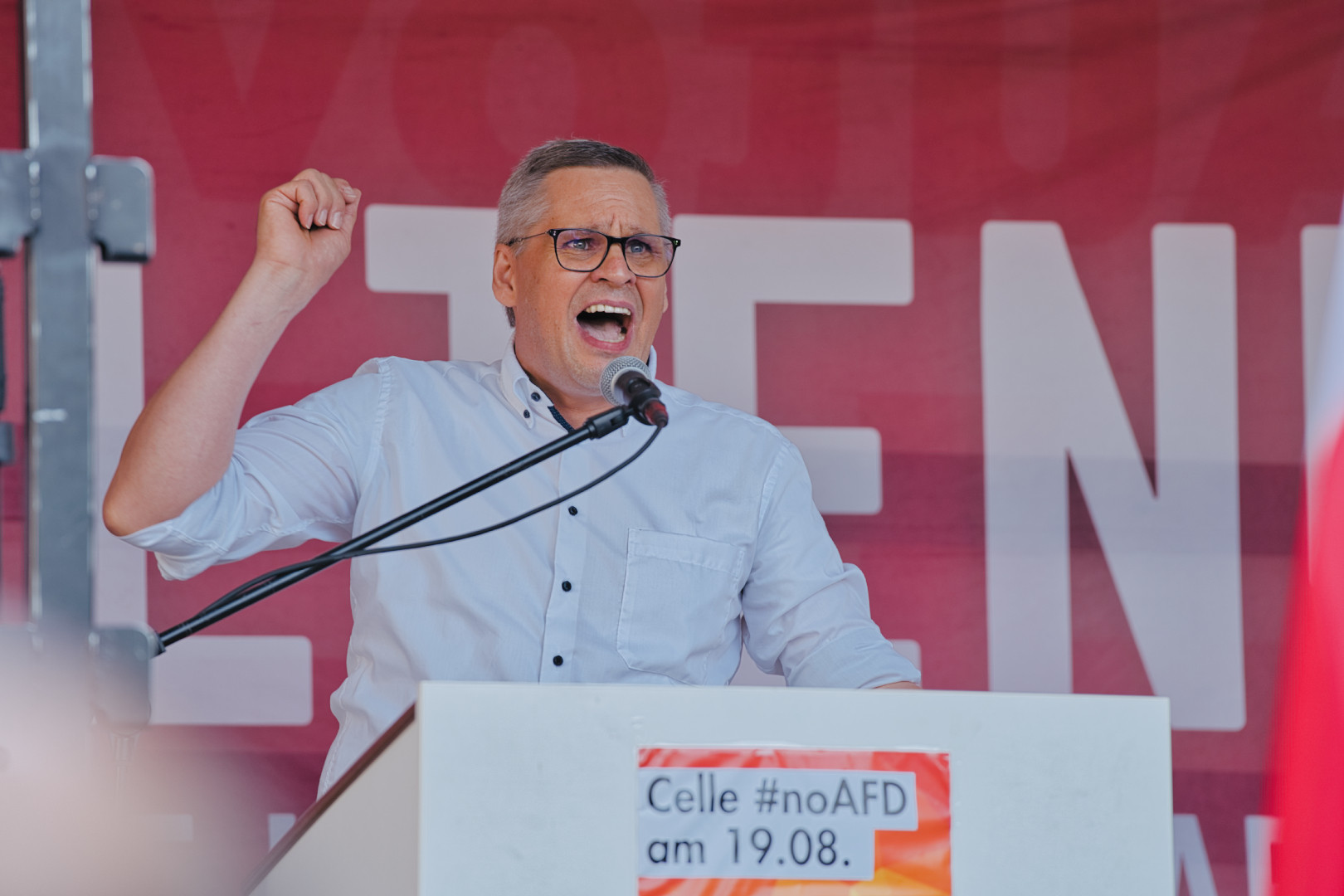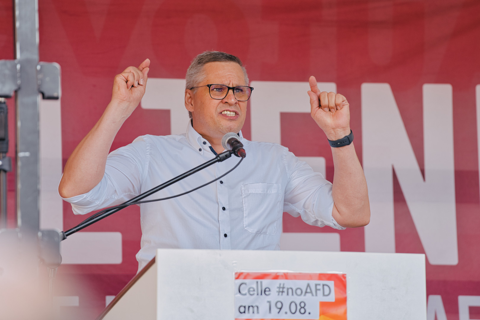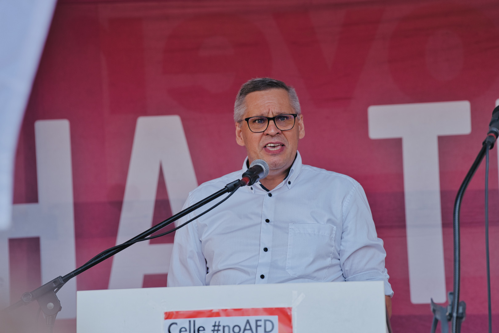 Thorsten Gröger, Hauptredner auf der Gegendemonstration zum AfD-Parteitag und Bezirksleiter der IG Metall in Niedersachsen und Sachsen-Anhalt, sagt: „Die AfD steht mit ihren Positionen diametral den Grundwerten der Gewerkschaftsbewegung gegenüber. Wir wollen ein vielfältiges, solidarisches, sozial gerechtes Europa. Eine inklusive Gesellschaft, in der alle – unabhängig von Glaube, Geschlecht, sexueller Orientierung, Herkunft und sozialem Status – gleichberechtigt, frei und ohne Angst leben können. Wir unterstützen die Aufnahme und gesellschaftliche Teilhabe von Menschen, die vor Verfolgung, Hunger und Not flüchten. 90 Jahre nach Zerschlagung der freien Gewerkschaften durch die Nationalsozialisten ist es unsere historisch gewachsene Verantwortung vor dem Gespenst des Nationalismus zu warnen und uns den Demokratiefeinden im Land entgegenzustellen!“
