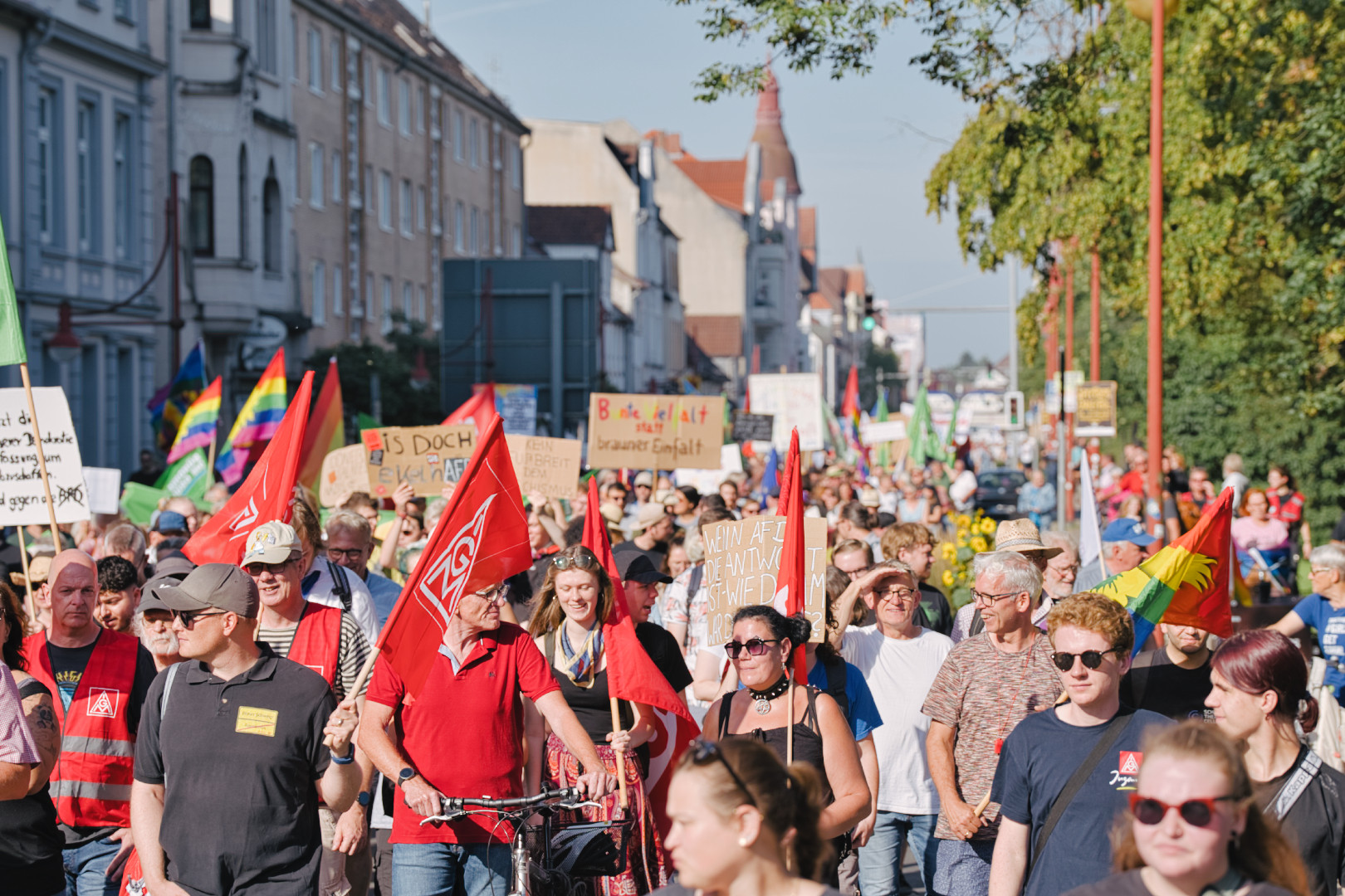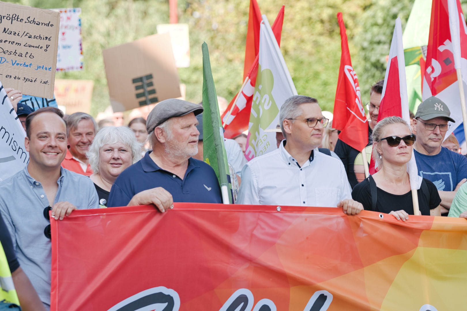 Mit dabei unter anderem Gewerkschaften, demokratische Parteien, Initiativen gegen Rechtsextremismus, Kirchen, Sozialverbände und Gedenkstätten.