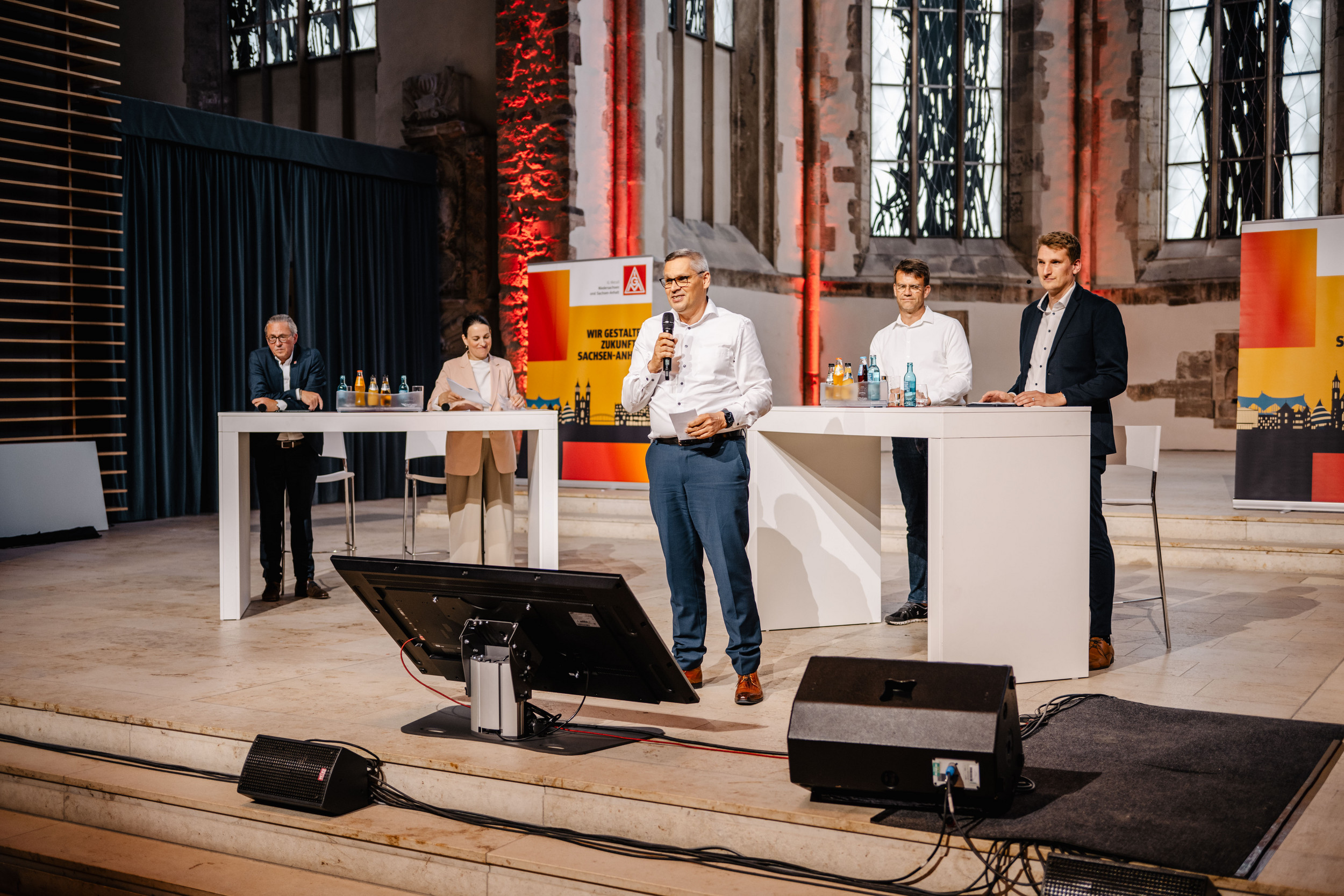 An einer Podiumsdiskussion nahmen neben dem geschäftsführenden Vorstandsmitglied der IG Metall, Wolfgang Lemb, unter anderem der Ostbeauftragte der Bundesregierung, Carsten Schneider (in digital), sowie Susanne Eva Dörrwand, stellvertretende Hauptgeschäftsführerin IHK Magdeburg, teil. Ferner war auch Jun.-Prof. Dr. Andreas Zopff von der Otto-von-Guericke-Universität in Magdeburg Panelteilnehmer. Auf die Frage, wie der Fachkräftemangel am wirksamsten zu bekämpfen sei, äußerten sich die Teilnehmenden wie folgt: