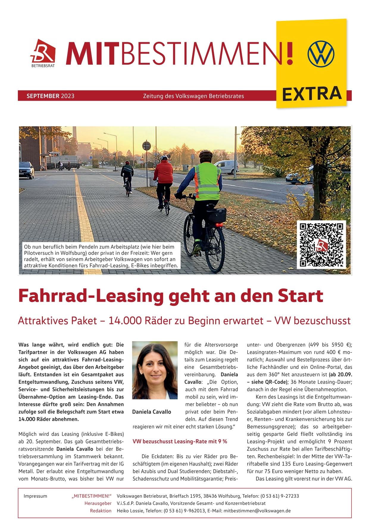 Daniela Cavallo, Gesamtbetriebsratsvorsitzende der Volkswagen AG, sagt: „Die Option, auch mit dem Fahrrad mobil zu sein, wird immer beliebter – ob nun privat oder beim Pendeln. Auf diesen Trend reagieren wir mit einer echt starken Lösung.“
