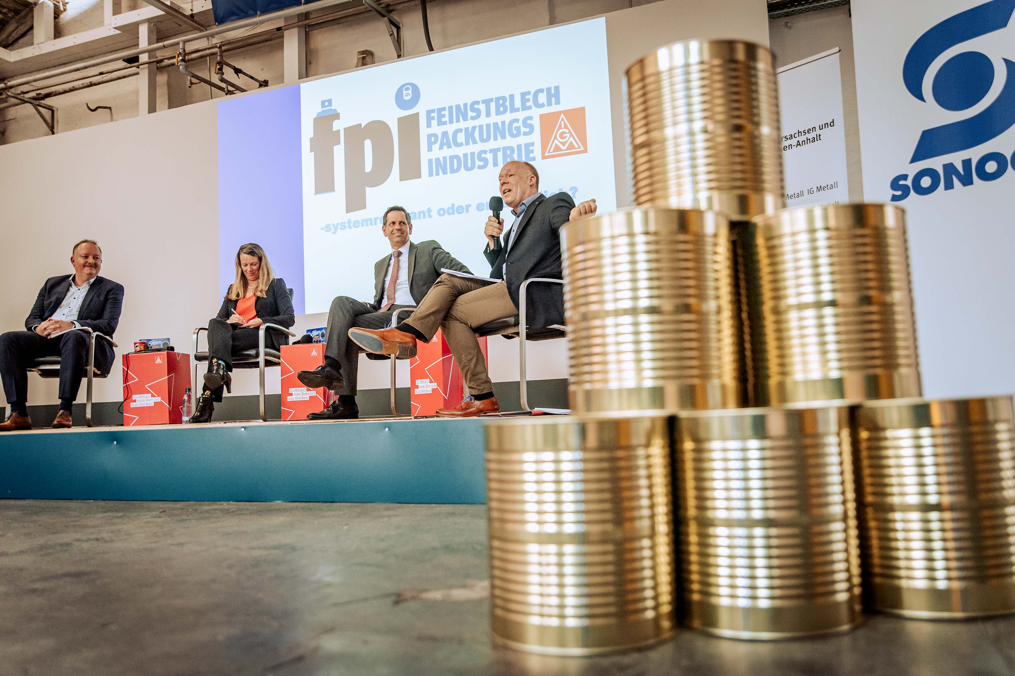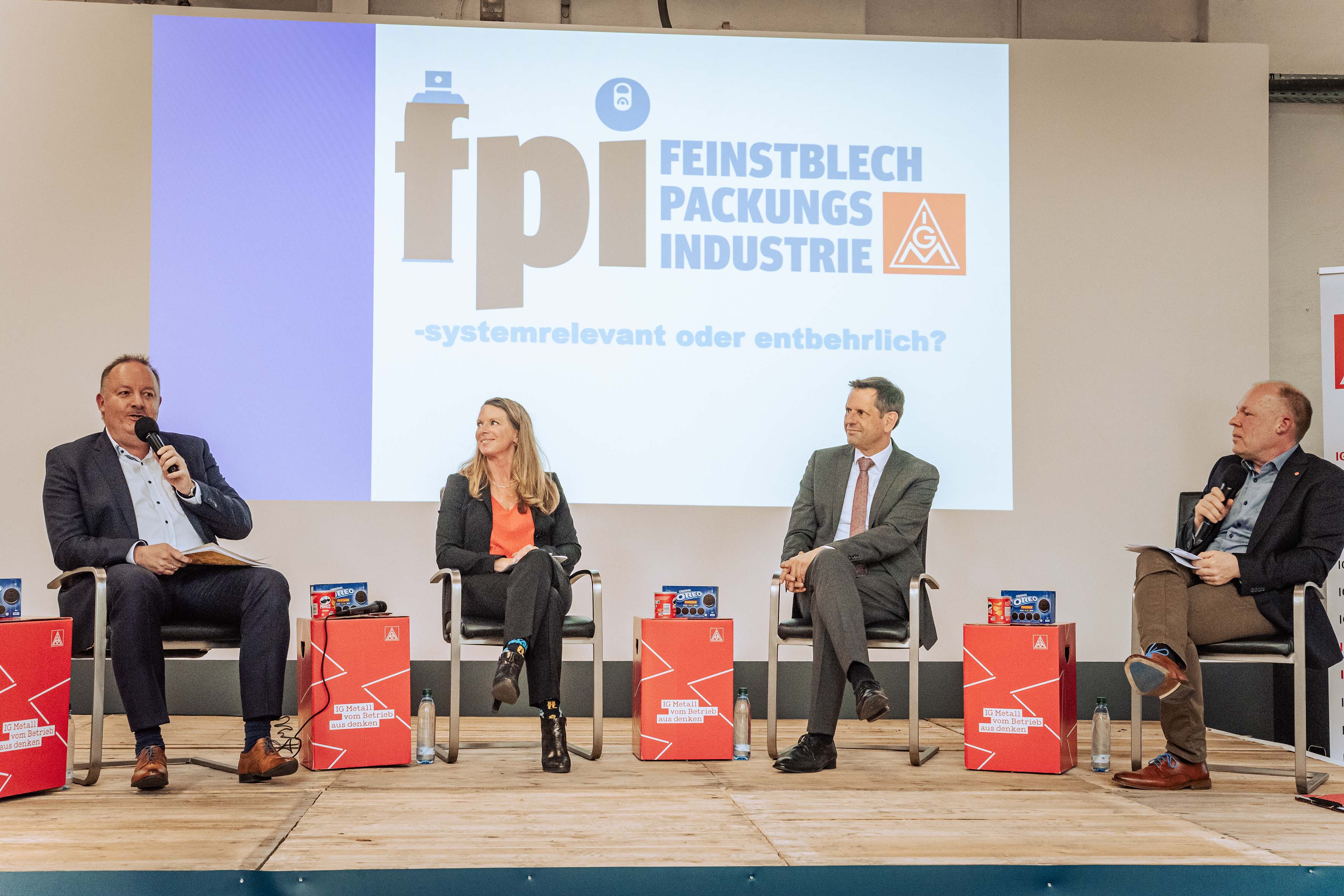 Am Montag, den 14. April 2025, fand bei der Sonoco Metal Packaging Germany GmbH (zuvor: Eviosys) nebst der Betriebsversammlung eine hochkarätige Podiumsdiskussion statt, bei der die ökonomischen und strukturellen Herausforderungen der Feinstblechpackungsindustrie im Mittelpunkt standen.